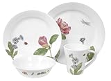 In today's fast paced, always on the go lifestyle, you need dinnerware that you can trust. CORELLE® glass dinnerware has the smarts and savvy to take what you dish out and still impress your most scrutinizing dinner guest. Designs are selected from the most enduring and emerging trends in home decor for consumers who want timeless styling while still updating their home fashions. CORELLE® provides relevant value in the dinnerware assortment with sophisticated patterns and upscale looks. Sleek squared shapes with rounded corners and flared rims fuse perfectly with the traditional rounded inside, resulting in a totally fresh but timeless look. Versatile enough for everyday and entertaining!- 4-Dinner plates; 4-serving bowls; 4-lunch plates; 4-mugs