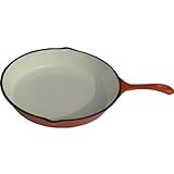 Cajun Cookware Skillets 12 Inch Enamel Cast Iron Skillet. GL10497-12E. Enamel Cast Iron Skillets. The Cajun Cookware skillet is made of enamel coated cast iron and measures 12 Inches. The enamel cast iron skillet inside diameter 11 3/4 inches, the outside diameter 12 inches, depth 1 3/4 inches, and the overall length 17 inches. Cast iron cookware makes for superior heat retention and even heating and cooking of foods.- 12 Inch Skillet